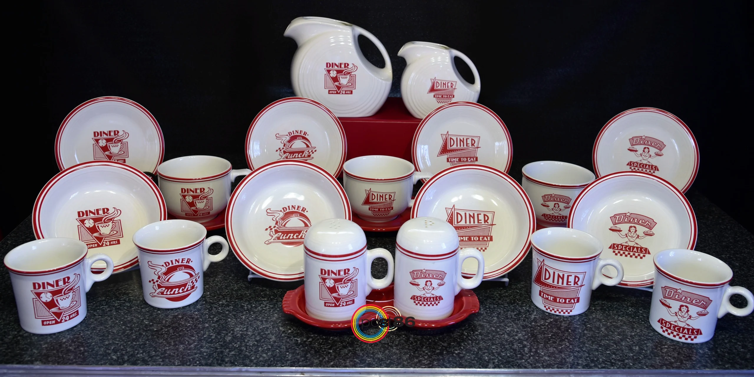 Diner Collection - Scarlet Diner Collection – Scarlet – Pattern Numbers – multiple see belowThis pattern was produced on White and introduced in early 2005. It was exclusive to Betty Crocker™ retail catalog and website.Discontinued late 2005. There are six (6) different designs in this collection as shown below. Thank you to Cindy Benson Hawthorne for the use of her photo.